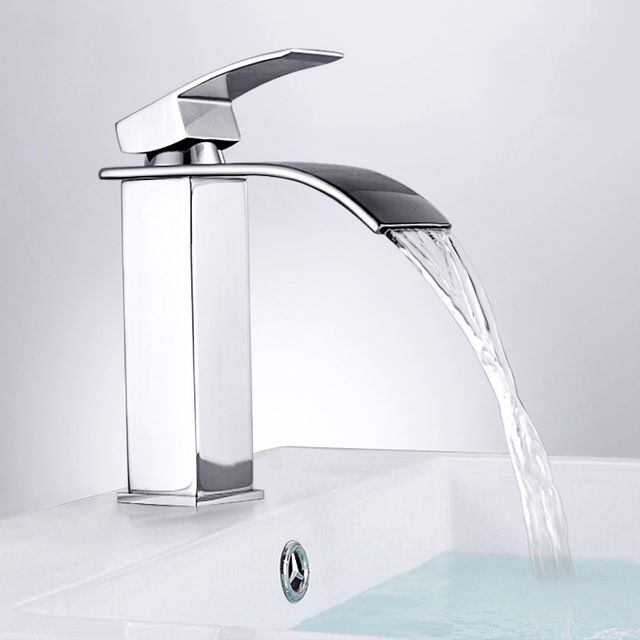 Waterfall Spout Chrome Brass Bathroom Sink Faucet Single Handle