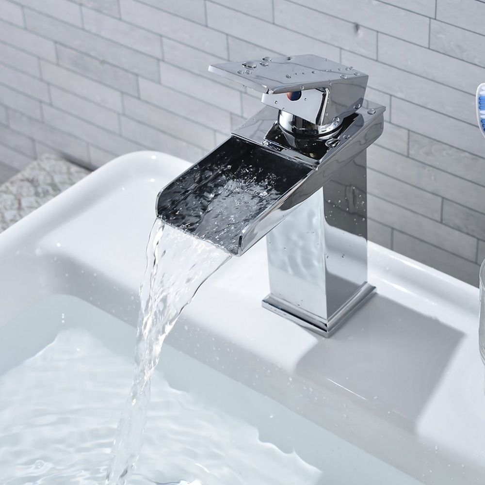 2020 Square Waterfall Faucet Tap Sink Chrome Plating Polished