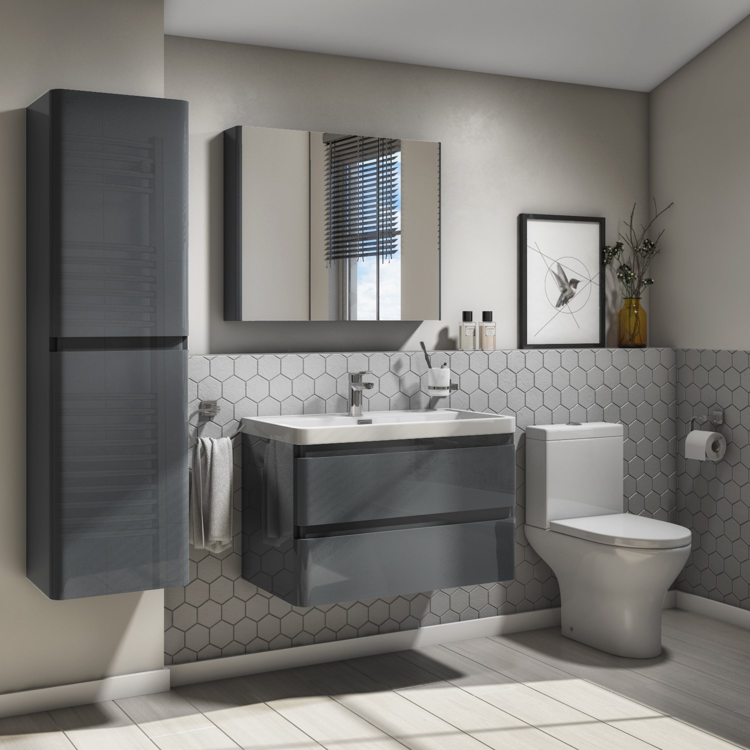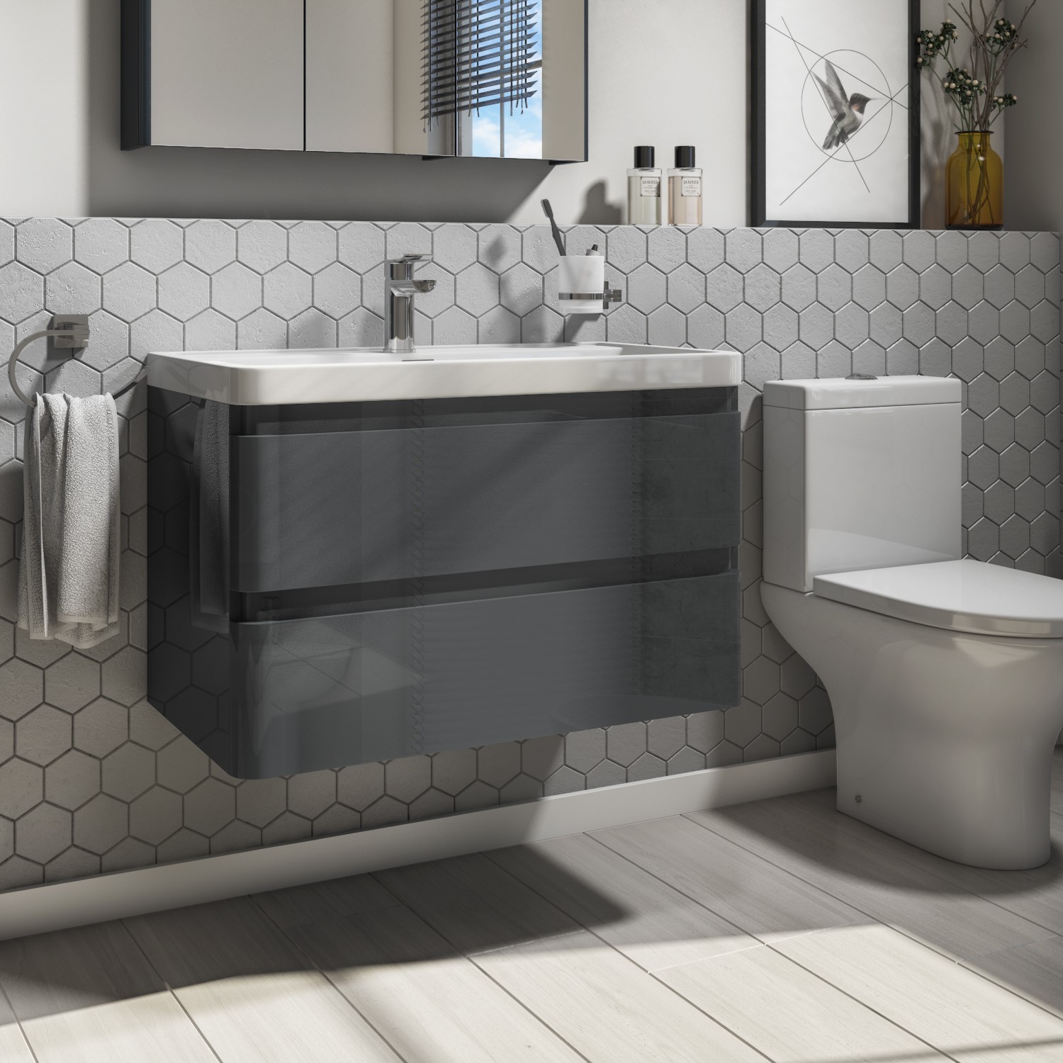 800mm Dark Grey Gloss Wall Hung 2 Drawer Vanity Unit With Basin