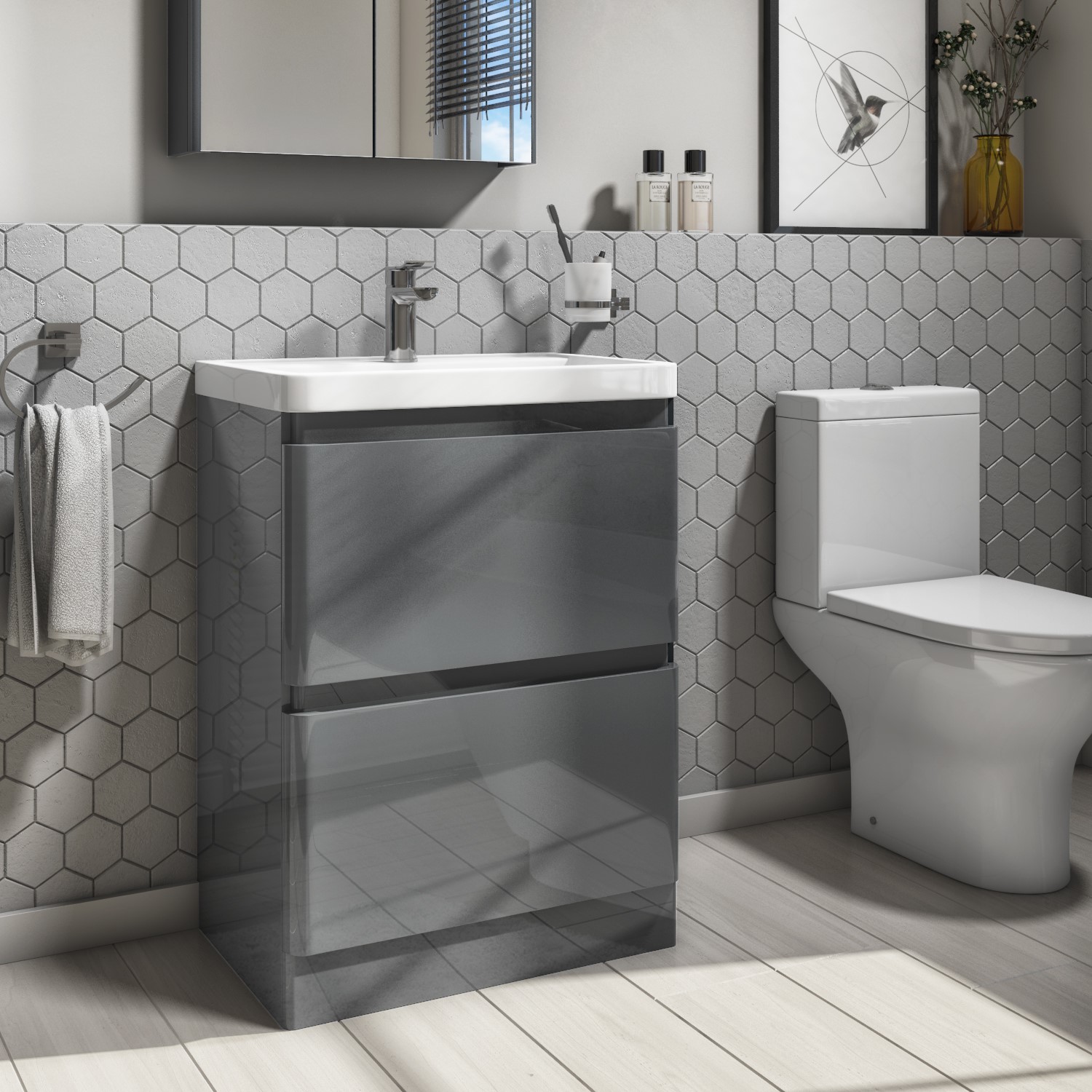 600mm Dark Grey Gloss Floor Standing Vanity Unit With Basin 2