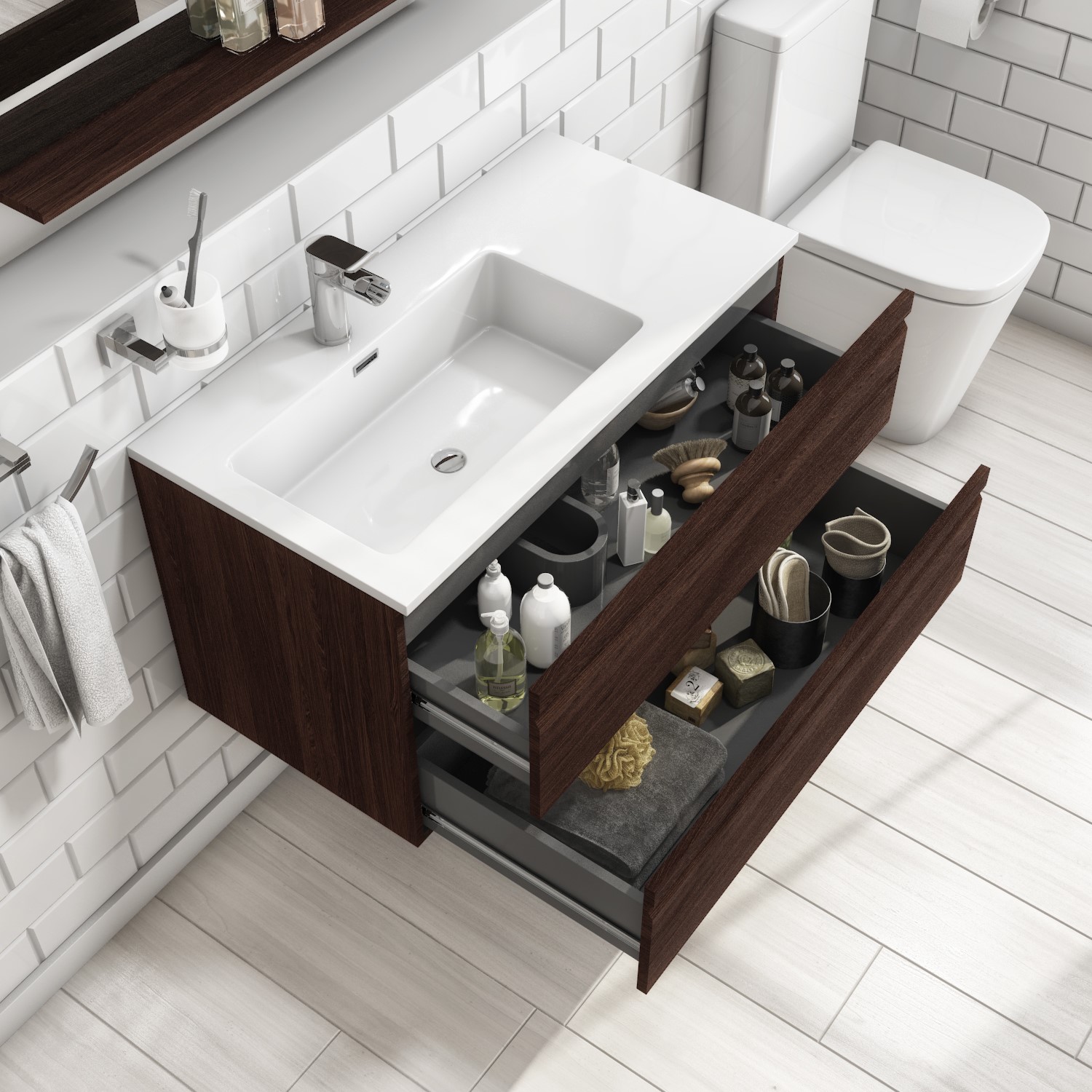 900mm Wall Hung 2 Drawer Vanity Unit With Basin Dark Oak Boston