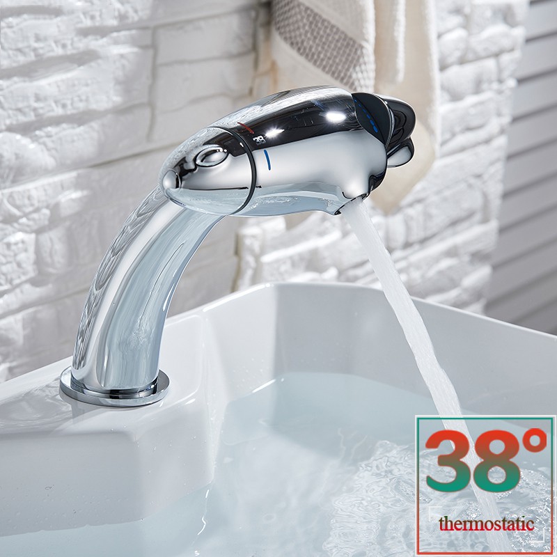Thermostatic Basin Faucet Dual Handle Bathroom Tap Chrome
