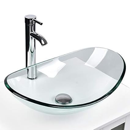 Yourlite Tempered Glass Vessel Sink And Faucet Combo Round