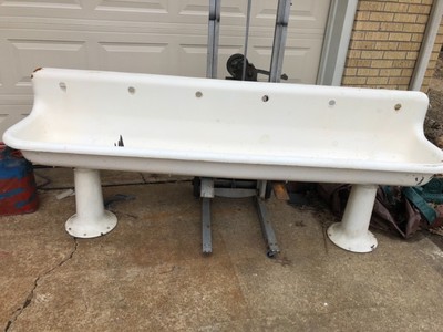 Huge Antique Cast Iron Trough Sink 8 Long With Pedestals And