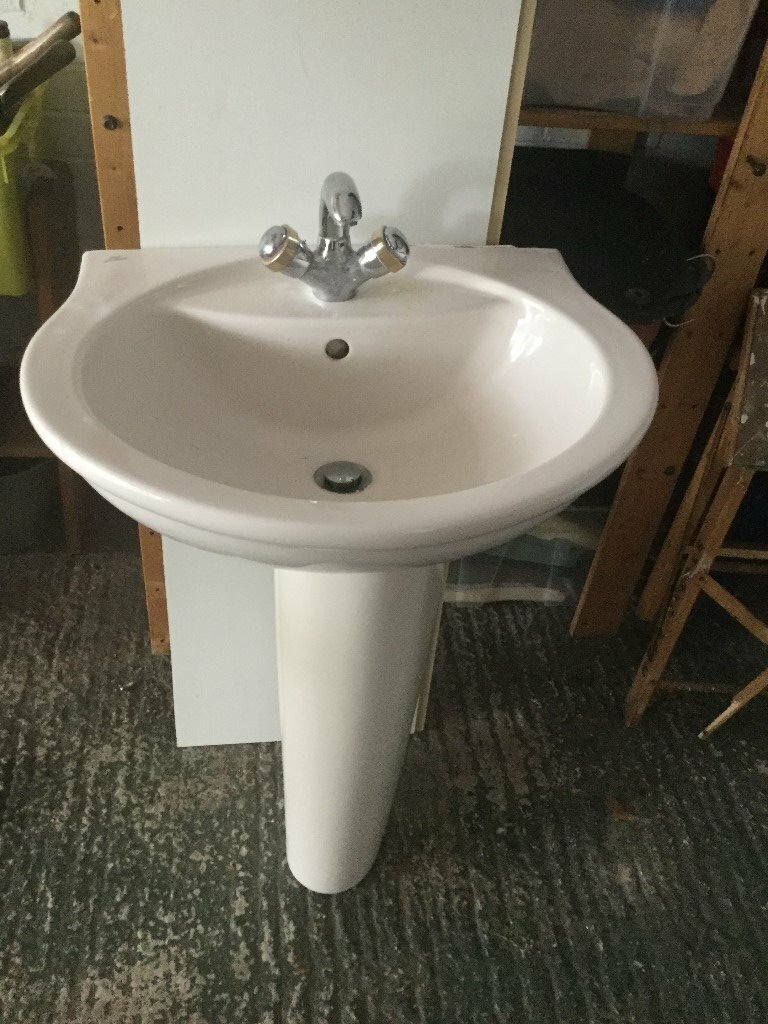 Pedestal Sink And Mixer Taps Cream Off White In Bramhall