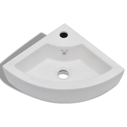 Festnight Bathroom Corner Sinks Ceramic Wall Mounted Sink Corner